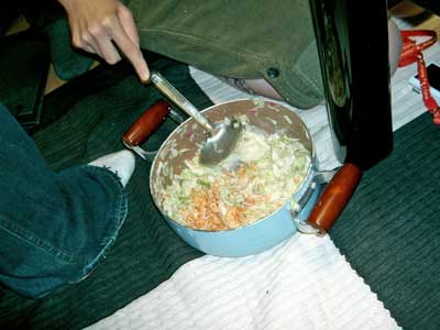 ある日のこと、突発的イベントとしてキャベツパーティが隊員の家で行われました。キャベツを大量に入手したため、少しでも減らそうというイベント。別の見方からいえば、お好み焼きパーティ・・・ともいいますが。準備中は適当に遊びます。