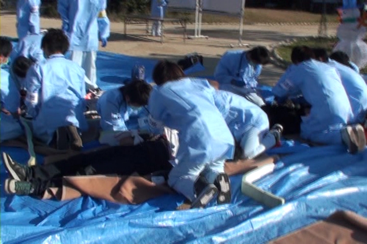 学生消防隊の訓練活動・・・というわけではないのですが、隊内に多く在籍している救急救命を学んでいる学生たちが大学で行われたトリアージ訓練に参加しました。