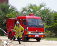 本日は気温がMAX30度を超える中、オープンキャンパス1日目で災害救助演習と放水体験を行いました! まず、災害救助演習ではポンプ隊役とレスキュー隊役、学生消防隊役、傷病者役に分かれて学生警察支援サークルスターラビッツ(以下SRと称する。)と協力して演習を実施しました。 ↑ポンプ隊の活動状況 ↑レスキュー隊の救出状況 ↑学生消防隊役の救護状況 ↑SR隊員による車両検査状況 ↑レスキューチーム ここで種明かしをしますが、この度我々のパートで演習に参加しているのは、ほぼ1年生です。入って7か月でまだ経験が浅いですが、隊のクオリティを上げていくために今の時期から本格的に訓練実施します。弱音をあげる隊員や悔しい顔をする隊員もいましたが、それを糧にこれからの活動に取り組んでほしいですね。 学生消防隊という名を背負っているのは1年生も同じですから。 さて、その後は放水体験を行いました。 ↑体験状況 安全に行ってもらうために、しっかりと指導はもちろんのこと安全管理を配置し実施しました。 体験者は「意外と重たいんですね。」や「勢いがすごっす!」など、圧倒されていた様子でした。 これらを機にぜひ入隊してほしいですね! そんな傍らでしっかり展示場を設け、通りかかった来場者に見ていただけるよう努めました。 ↑展示場の風景 消防隊のパンフレットが予想以上に減っていてうれしかったです。(笑) 明日も災害救助演習と放水体験を行いますので、ご覧になりたい方は千葉科学大学マリーナキャンパスまでお越しください! 災害救助演習は池のある中庭で11時45分より開始します! 放水体験は車庫前(図書館の裏側)で午後1時より開始します! お待ちしています! ~今日のオフショット~ 殴り合いのケンカ!? すごい怪我!! ではないんです。ご安心ください(笑) このブログの写真をよく見てる方は気づくはず。。 レスキューの写真をもう一度見てみてください、わかりますよ 実はこの二人は傷病者役なんです。メイクがリアルすぎますよね(笑)