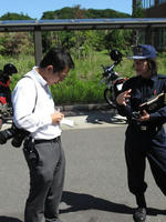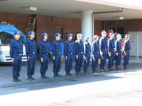 先月26日、読売新聞の取材を受けました。取材内容は隊員数名のインタビューと整列時や放水時の写真撮影等であり、その記事が10月17日の読売新聞朝刊に載りました。取材前に消防車の整備を行う隊員達。隊員から消防隊のことについて説明を受けている新聞記者。放水準備に走る隊員と新聞記者。放水中の隊員。整列している隊員達。