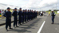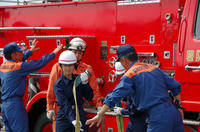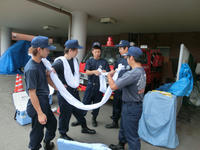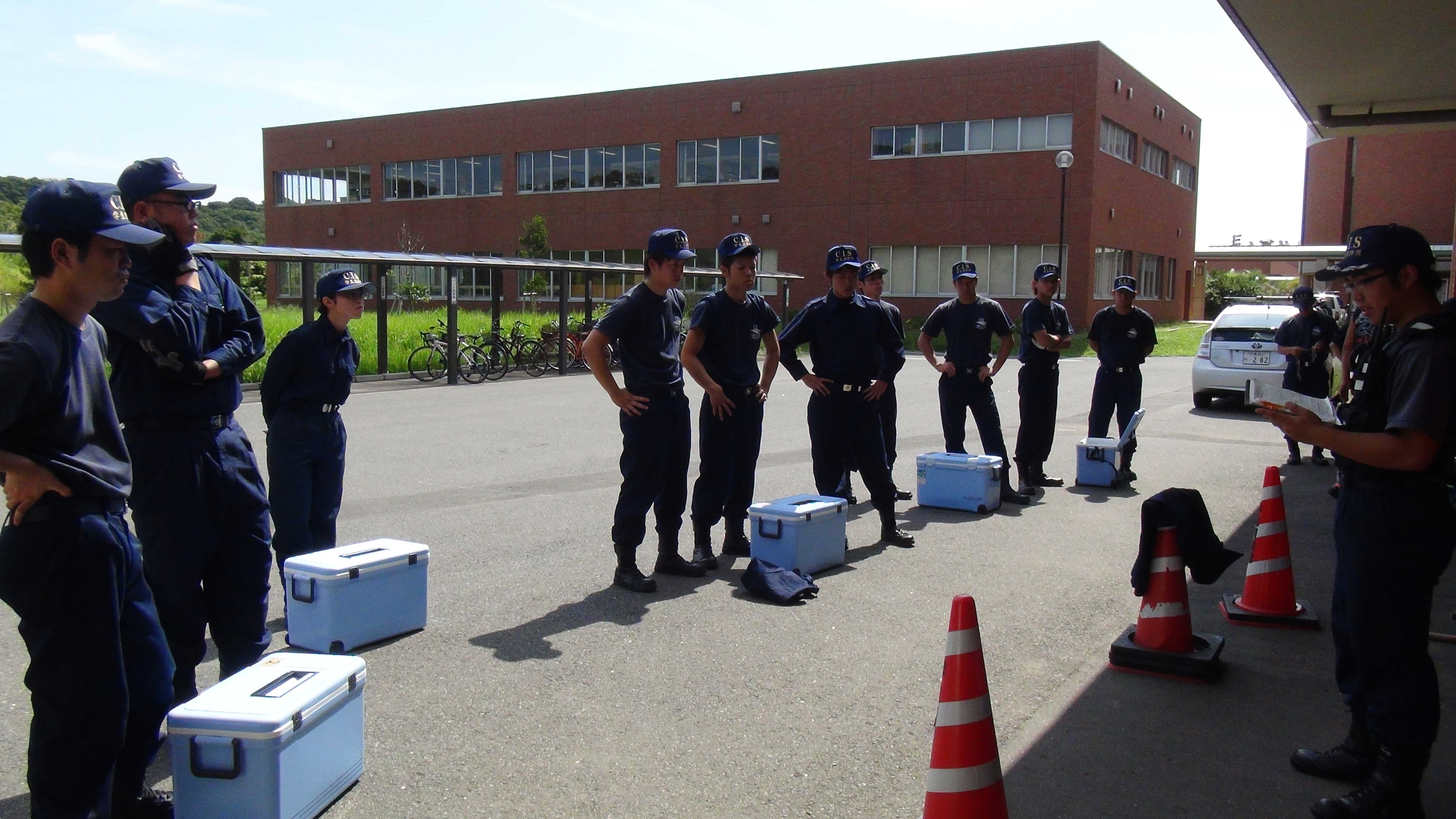 本日は今年初、銚子消防本部と合同訓練を実施しました。 ↑銚子消防本部との整列状況 天気が悪いと予想があった中に関わらず、 日差しが強く気温が高いという予報と180度違う天候でした。 みんな汗だくでしたね。 しかし、白い歯出さずに一生懸命取り組んでいました。 ↑猛暑の中での訓練風景 訓練内容としては 九都県市に向けた訓練を行いました。 普段と異なる動きが多く、戸惑うシーンが数多くありましたが 消防本部の方々の指導のおかげできちんと把握することができました。 ↑合同訓練の活動状況 猛暑の中、訓練の休憩中にいただいた飲み物とてもありがたかったです。 そして、訓練したことを忘れぬよう練習し、 本番には習ったことをすべて発揮できるようにします。 本日はお忙しい中、本当にありがとうございました!! 午後は合同訓練内容の確認と放水体験を実施しました。 暑い中にも関わらず、来てくれた学生のみなさんありがとうございました。 受験勉強がんばってください! 応援してます!!