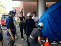 本日はPSA(救急救命士学生団体)と合同で訓練を行いました。 主な内容としては ・ポンプ車の登場体験 ・放水体験 ・救助訓練 を実施しました。 ↑救助体験状況 ↑放水体験状況 急な大雨で中止になった訓練もありましたが、PSAの皆さんと共に活動できて、互いの名や活動内容、共同訓練などが出来とてもよい経験になりました。 PSAの皆さん、お忙しい中ありがとうございました。