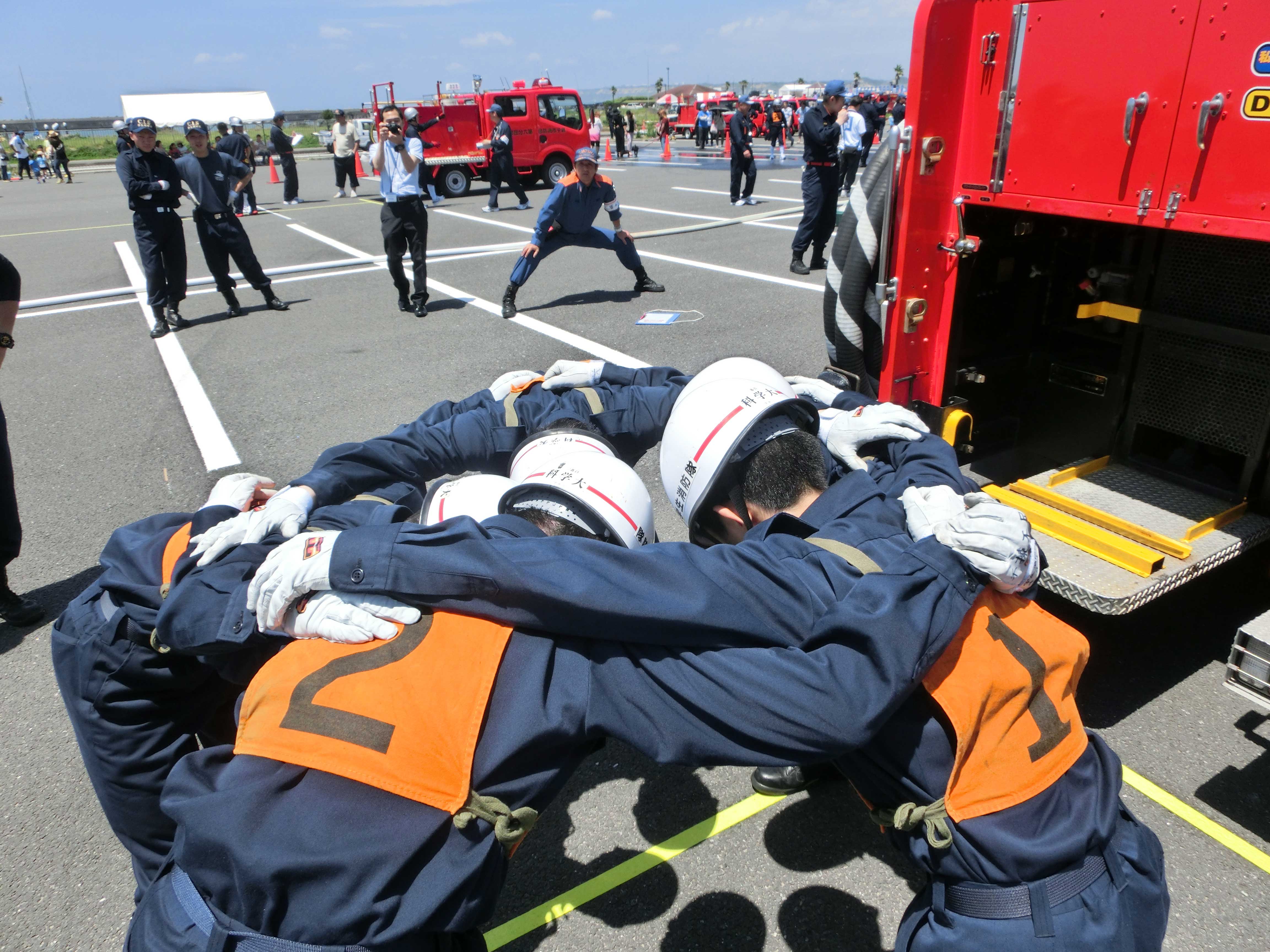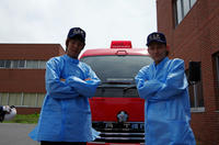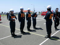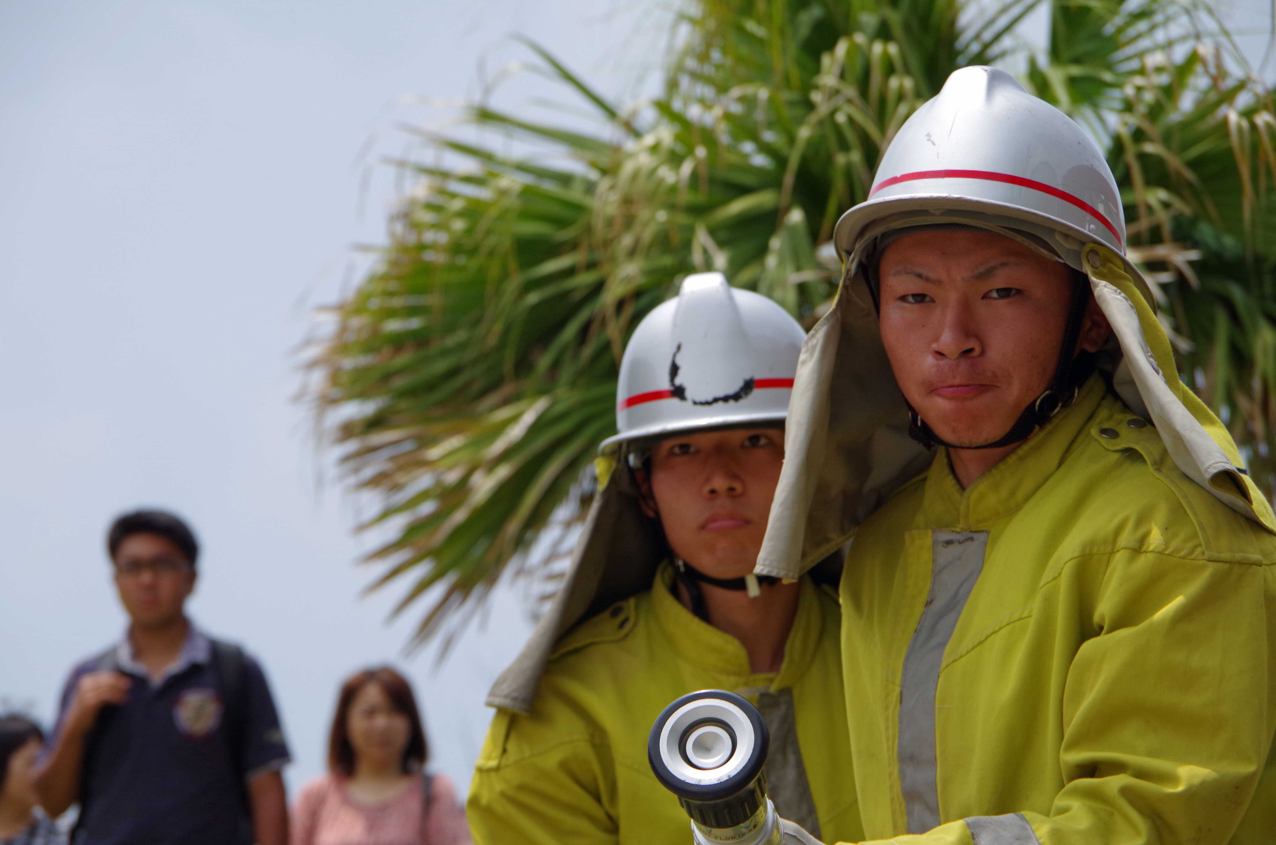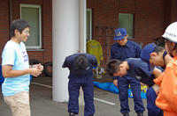 今月28日の日曜日に、オープンキャンパス2日目が行われました。 内容は昨日と同様に「災害救助演習」と「放水訓練」を実施しました。 災害救助演習では学生消防隊と学生警察支援サークルスターラビッツ(以下SRと略する。) まず、災害救助演習では1日目の反省点を改善し、各々が満足いくように訓練することができました! ↑ポンプ隊の放水訓練状況 以下のメンバーが、各ロールを担当してくれました! お疲れ様でした!! ↑ポンプ隊のメンバー ↑レスキュー隊のメンバー ↑学生消防隊役のメンバー ↑傷病者役のメンバー ↑警察官役のSR隊員メンバー 続いて、放水訓練では日中最も熱くなる13:00ごろから開始しましたが、たくさんの来場者が来てくださいました! ありがとうございました!感謝です!! 内容としては、放水体験や呼吸器着装体験などを実施し、楽しんでもらいました。 ↑防火服装着の状況 また、種明かしパート2として、体験にあっては指導が1年生メインの2、3年が安全管理というロールで実施しました。 1年生は普段の訓練で学んできたことを体験者に教えている姿は、上級生としては素直にうれしかったです。(笑) ↑放水体験の指導状況 しかし、まだまだ自主性がないのとメリハリのない隊員もいてまだまだ指導の必要性を感じました。 オープンキャンパスを終え、様々な想いをした隊員は多かったと思います。 特に1年生は自分のレベルがいかに低いか、そして学生消防隊の隊員としての責務などを実感したと思います。 成長著しい彼らに、今後も期待です。 ↑車庫前にて記念整列写真 ~今日のオフショット~ ↑頭下げて、、? 上の写真は別に頭をさげている訳ではございません(笑) これはOBのK先輩がいらっしゃったときの挨拶シーン。 声は大きく、きちんと頭をさげて挨拶している彼らはサイコーです。 驚いているのか、先輩も苦笑いでした。(笑) それと、イベントがある度に銚子まで足をお運びいただき感謝しています。 本当にりがとうございます。 先輩の築きあげてきた学生消防隊をさらに良くしていくように努めてまいります。