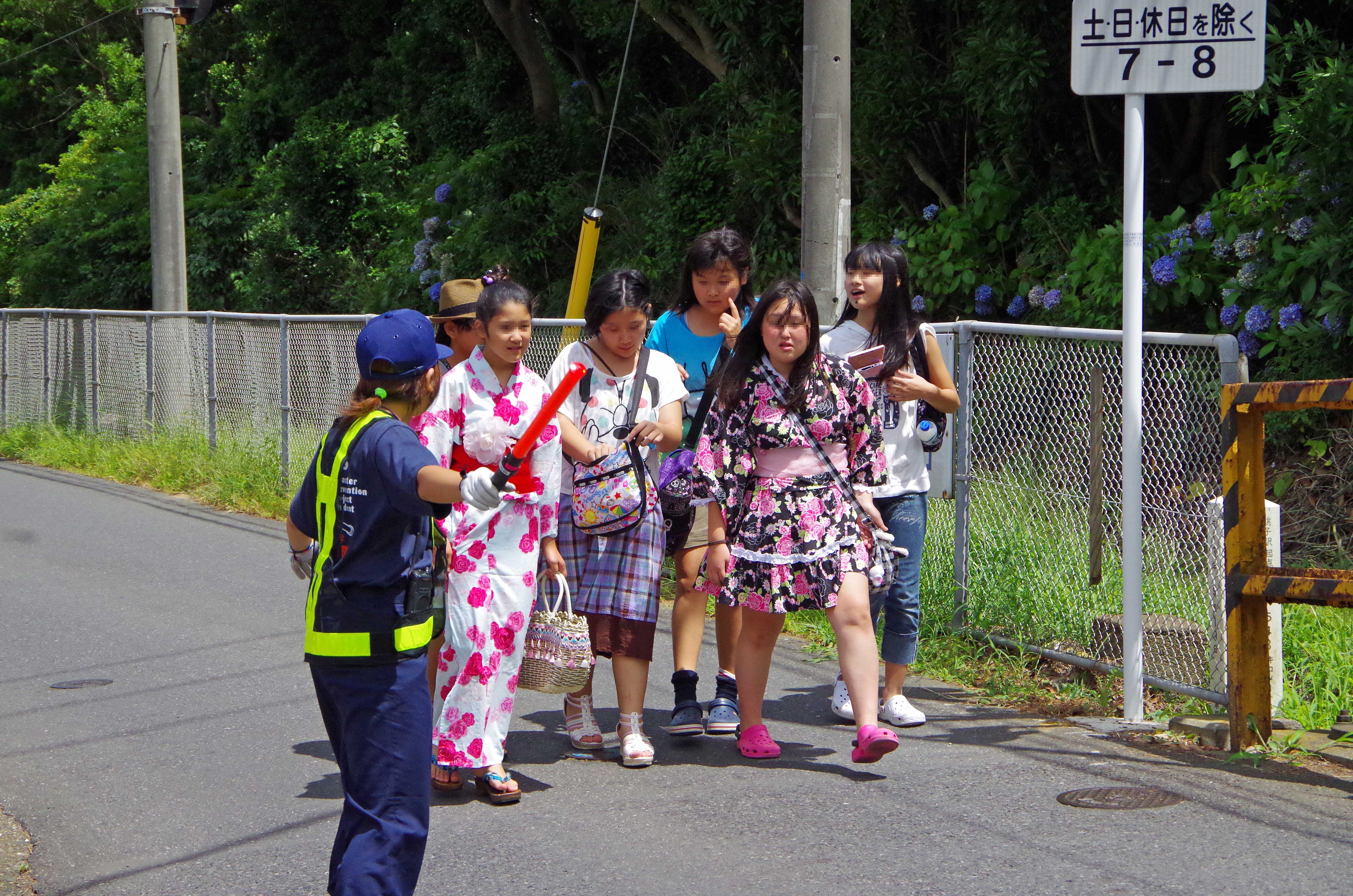 7月20日に我々、学生消防隊は浅間神社の警備を行ってきました。 気温は22度くらいで快晴、風もありコンディションはとても良い日でした! 警備日和でしたね!(笑) ↑浅間神社 今回は、学生警察支援サークルスターラビッツ(以下SRと称する)と合同で警備活動を行いました! 総勢約40名弱も集まり、警備はうまくいきそうだと不思議と思わせてくれました。 ↑SRと警備活動前の整列状況 さて、学生消防隊は各場所で交通誘導を行い歩行者保護に努めました。 2,3年生は慣れた手つきで車両や歩行者をさばいていきますが、新入隊員は動きが小さく、緊張していた様子でした。 ↑車両と歩行者の誘導状況 そんな姿も午前中までで午後からは慣れはじめ、前より数段よくなっていった様に感じとれました。 また、ただ警備をするだけでなく、実際の警備員さんから警備についてアドバイスをいただきとても良い経験をすることができました。 ↑警備員さんの指導状況 さらに、道に困っていたおばあさんにお声掛けし、ご案内いたしました。おばあさんからは「ありがとう、すごく助かったわ」と激励のお言葉を頂戴したそうです。 以前に警備訓練したことが功を奏したようにも感じ、訓練成果が出てうれしく思いました。 ↑道案内状況 しかし、夕方ごろから人材が足りなくなり、カツカツの状態でのシフト調整がつづきました。大変でした。。涙 そんな中、来て下さったのが4年生の先輩方だったのです! 先輩方はわかっていたかのように登場し、警備配置についてくださりとても助かりました。 ↑夜の警備活動 おかげで厳しい状態から脱することができた我々でしたが、反省点が多く見つかり今後の警備活動に活かしクオリティをあげていくよう努めます。 それと警備後の撤収作業では全員が疲れ切った表情をしていましたが、ある隊員からは 「警備活動できてよかったです!またやりたいです!」 と言う隊員もおり、やりがいを感じてくれたことにとてもうれしく感じました。 最後に、警備活動にご協力してくださった一般市民の皆様をはじめ、浅間神社スタッフの方々や監督、先輩方に御礼申し上げます。 まだまだ至らない点もあるかと存じますが、これからも精一杯取り組んで参りますのでご声援のほど、よろしくお願いいたします。 ~オフショット~ 1、お昼にとった写真。普段真面目なS隊員ですが、祭りのせいか開放的になってしまったみたいです。。(笑) ↑視力検査、、、? 2、みればわかるこの真剣さ。学生消防隊という名を背負う者として責務ある表情をしています。I隊員の成長に期待大です。 ↑本気と書いてガチと読む。