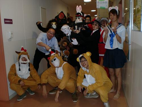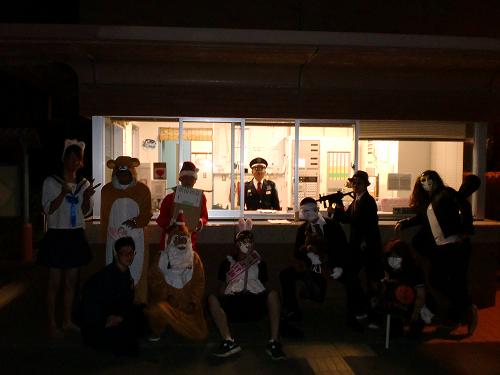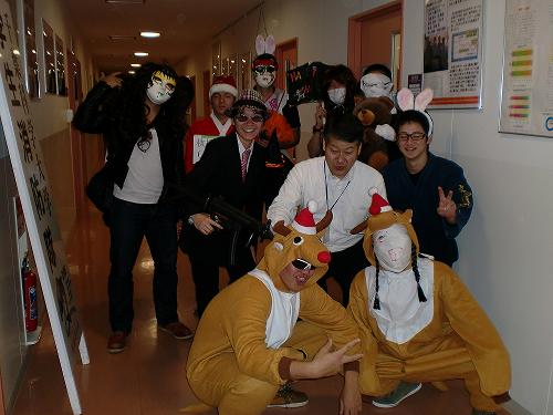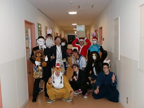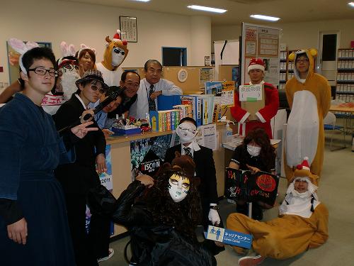 ハロウィンがやってきました!!ってことで今年も謎の集団が構内に出現しました。。。2011年10月28日の夕方・・・今年も男どもが女装など様々な仮装し、楽しみました♪(笑)救援物資という形でたくさんのお菓子を頂きました。先生方やキャリアセンター、健康管理センター、ヤマザキショップ、守衛さん、学生の皆さんご協力ありがとうございました。