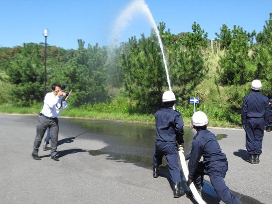 先月26日、読売新聞の取材を受けました。取材内容は隊員数名のインタビューと整列時や放水時の写真撮影等であり、その記事が10月17日の読売新聞朝刊に載りました。取材前に消防車の整備を行う隊員達。隊員から消防隊のことについて説明を受けている新聞記者。放水準備に走る隊員と新聞記者。放水中の隊員。整列している隊員達。