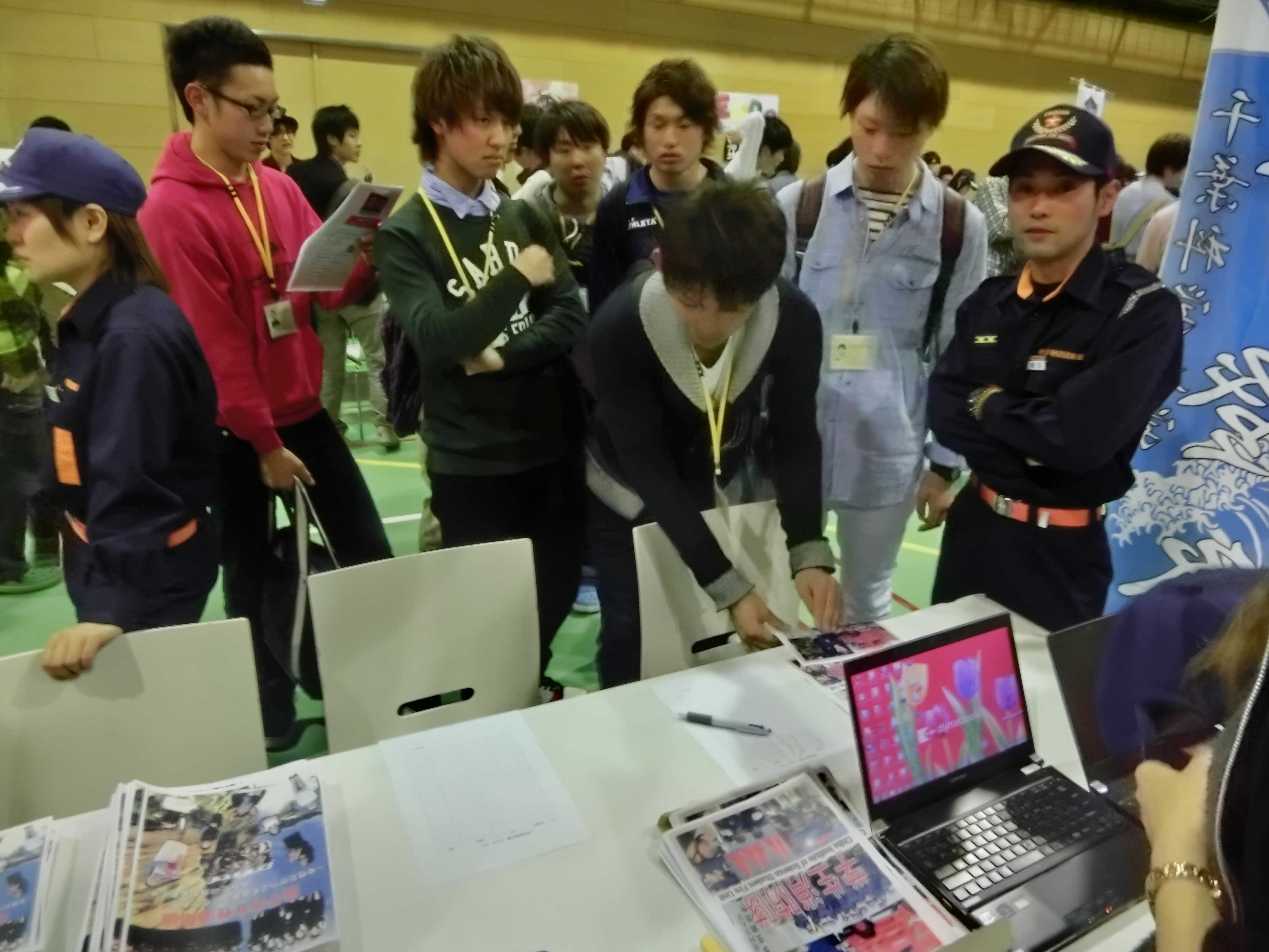 ↑ブースに来た新入生にパンフレットを配布している様子