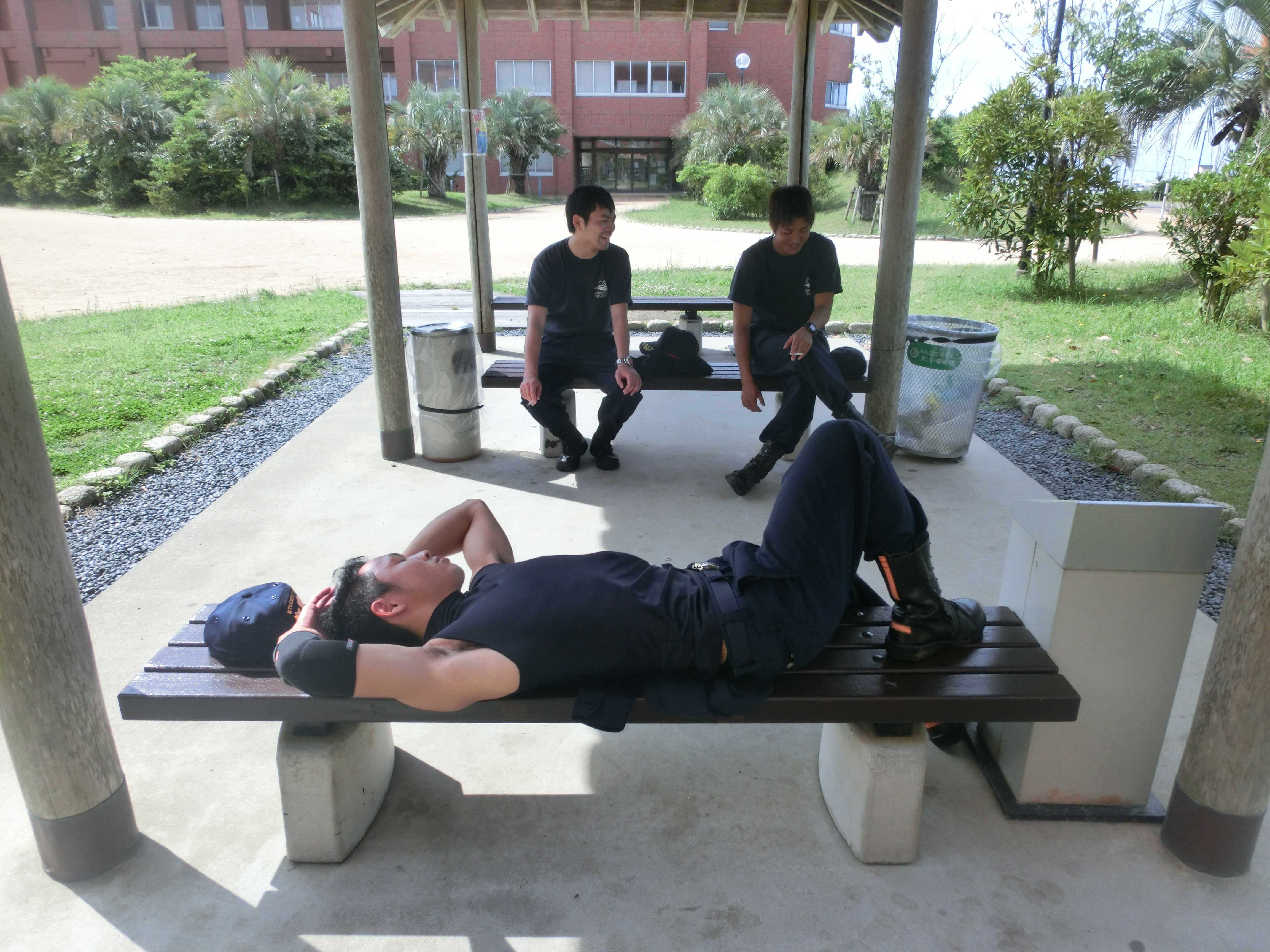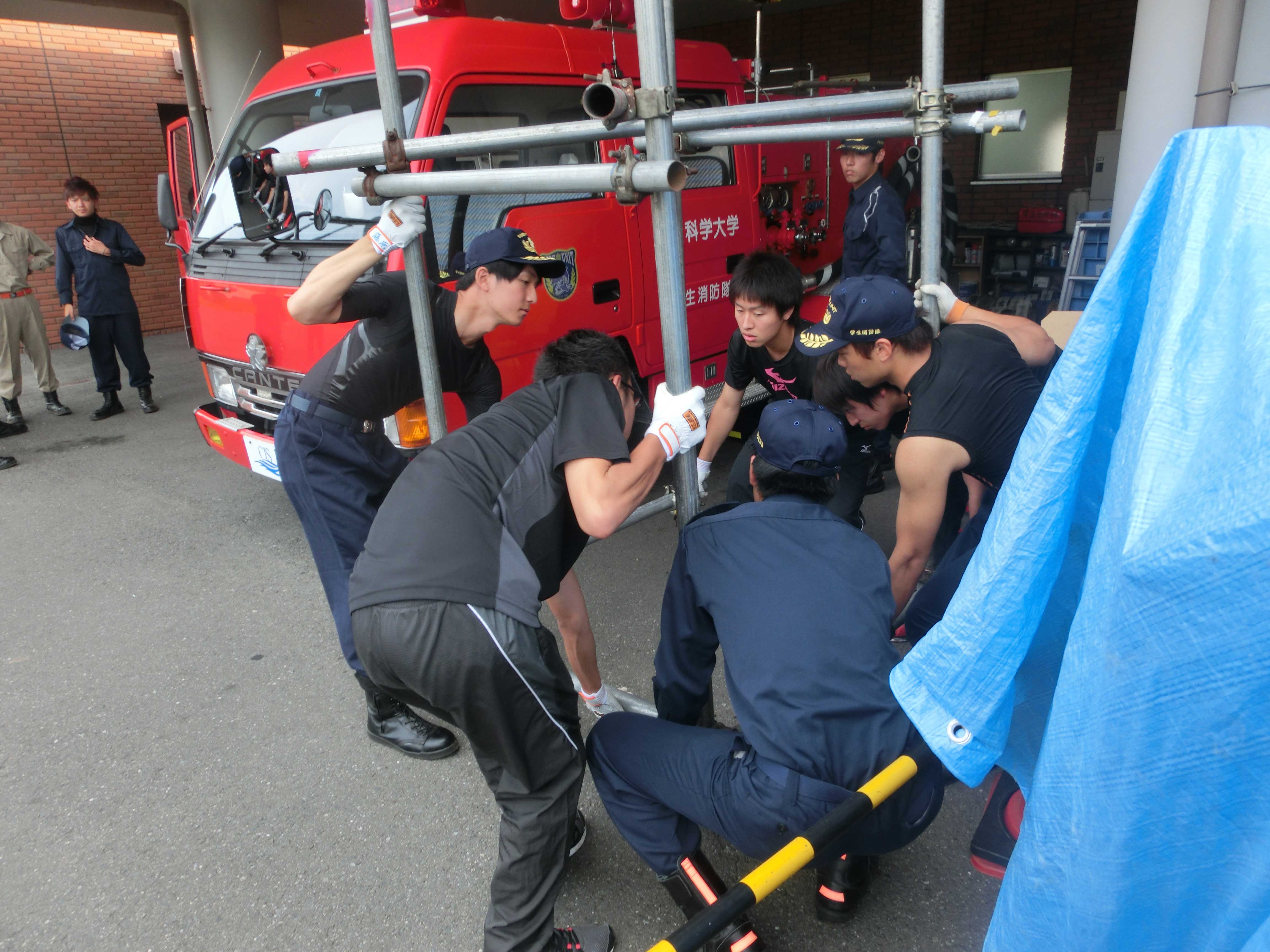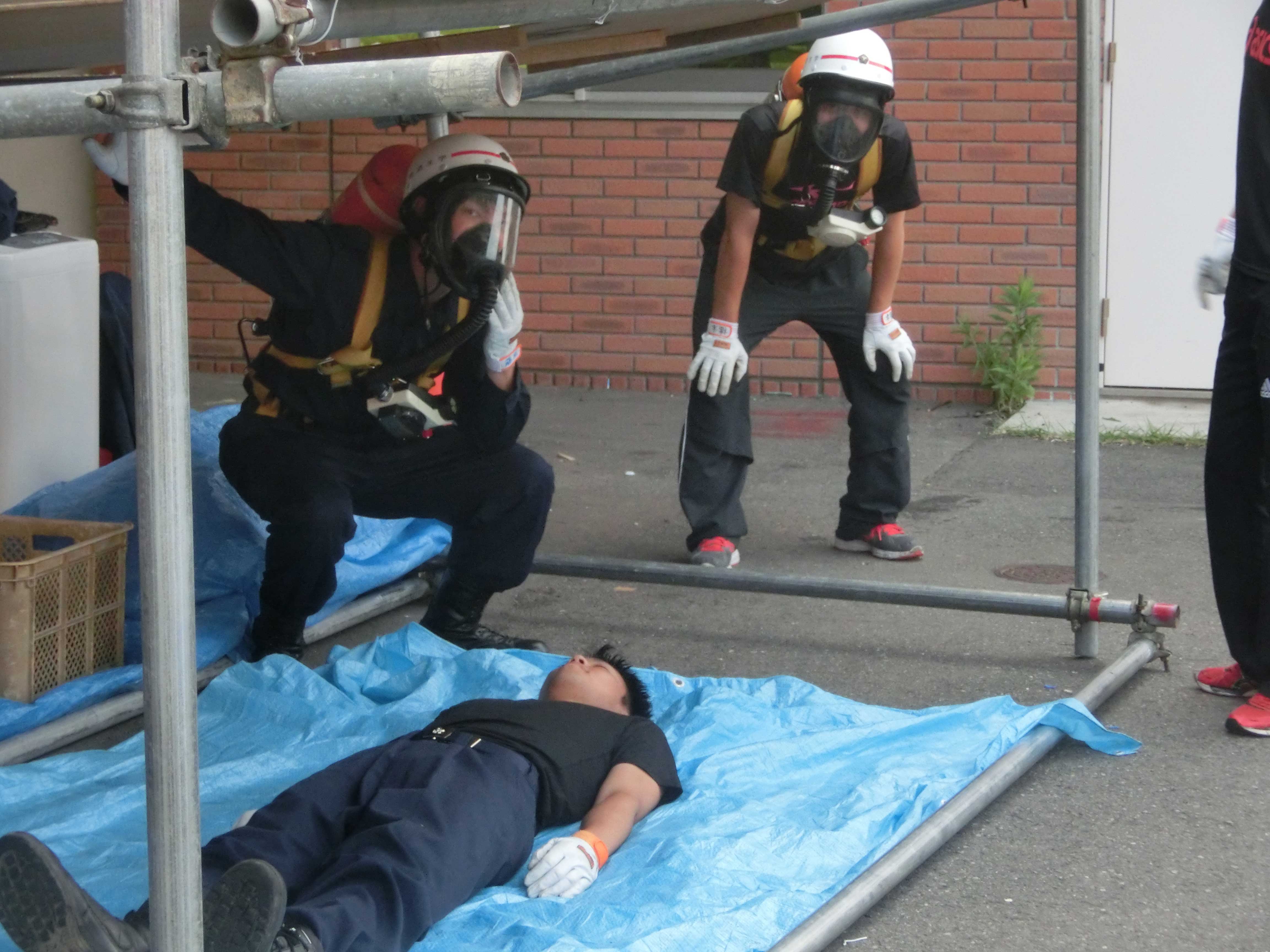私たちは要救助者役で、主に建物の地下に隠れました。