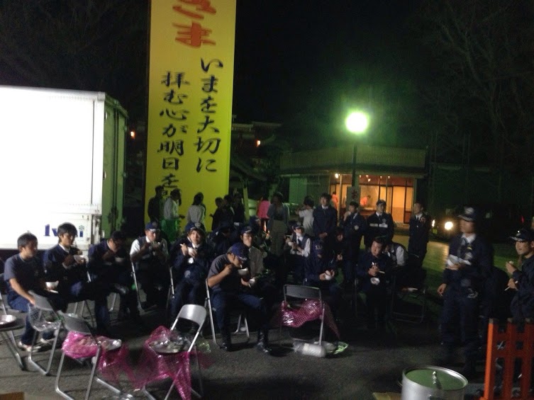 本日は第10回よさこい祭りの警備活動を、学生警察支援サークルスターラビッツと共に実施しました。 初めて参加するイベントで不安と緊張はしましたが、今までの経験や来場者の皆様のおかげで無事に終えることができました。 ↑警備活動状況!(左右とも) 上記の左写真のM隊員の笑顔がステキですね。(笑) また、いつもご一緒の警備員と警備しました。心強かったです。 ↑背中を任せ警備中の活動状況。 朝の6時から夜の8時までとすごく長くて疲れましたが、最後によさこい実行委員会の方々からいただいた、たくさんのおにぎりとつみれ汁が本当に美味しかったです! ↑最後の晩餐(笑い) 頑張ってよかったと、心から思いました。 第10回黒潮よさこい実行委員会の皆様、本日は参加させていただきありがとうございました! 微力ながらお手伝いさせていただき、成功できて本当によかったです。 これからも地域防災向上のために頑張っていきます! ~オフしょっと!~ 今日のオフショットこれ!! ↑警備の打ち合わシーンのはず、、 これは警備本部で撮影させていただきました。 そして 何も言わずにポージングしてくれた、I隊員。 かっこいいか、すごくかっこいいかは、、あなた次第(笑)