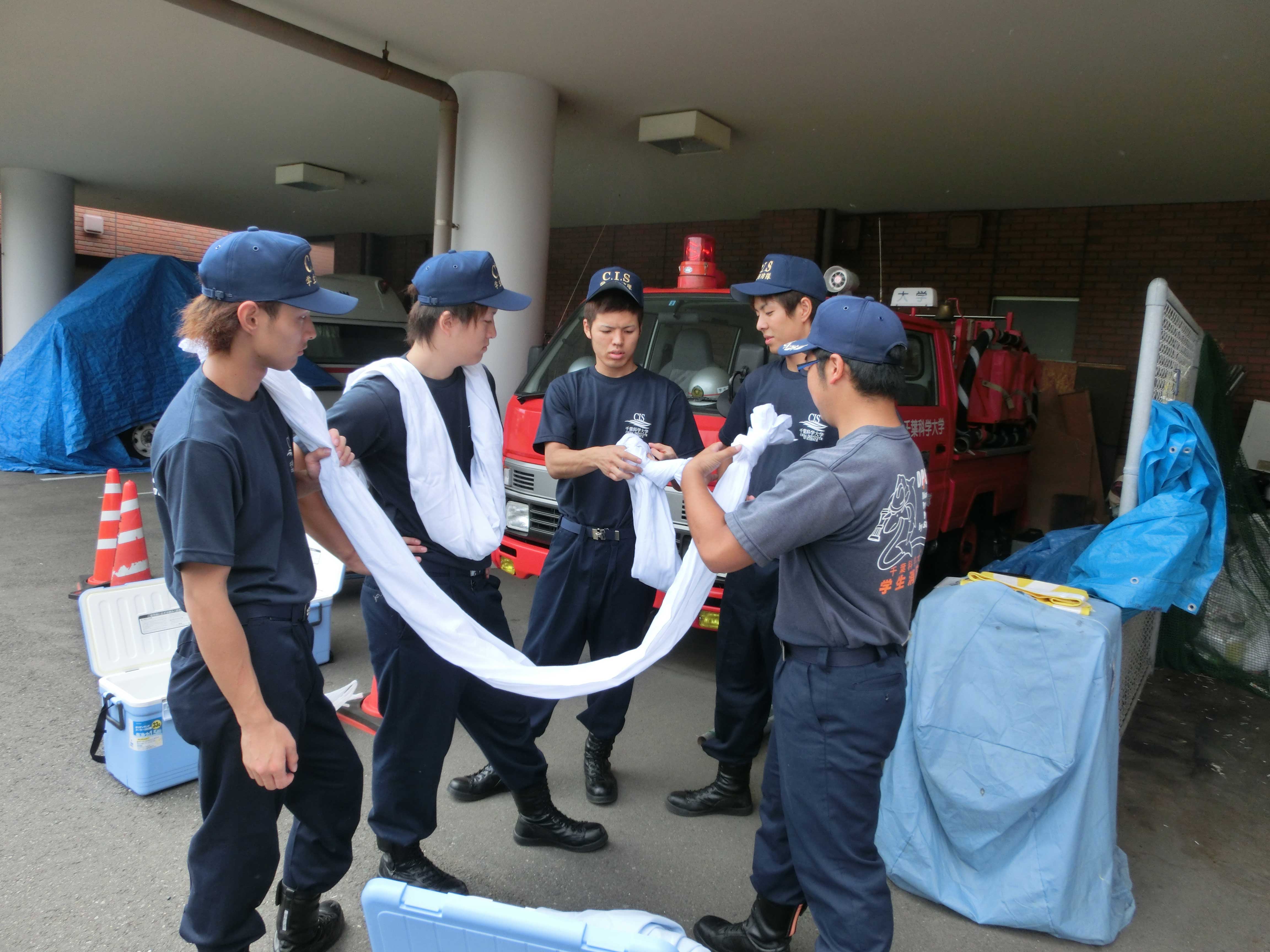 本日はPSA(救急救命士学生団体)と合同で訓練を行いました。 主な内容としては ・ポンプ車の登場体験 ・放水体験 ・救助訓練 を実施しました。 ↑救助体験状況 ↑放水体験状況 急な大雨で中止になった訓練もありましたが、PSAの皆さんと共に活動できて、互いの名や活動内容、共同訓練などが出来とてもよい経験になりました。 PSAの皆さん、お忙しい中ありがとうございました。