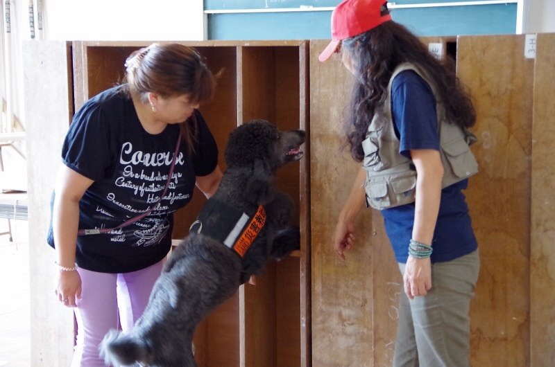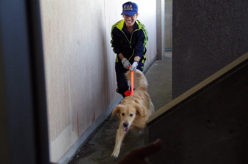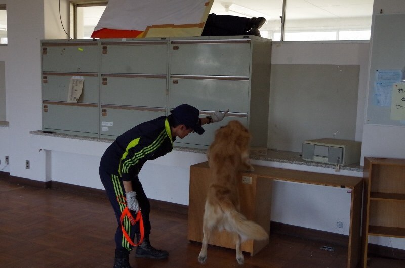 9月21日に、救助犬チームS.A.R.D.の方々とご一緒に訓練をさせていただきました。 ↑屋内捜索訓練の状況(紺色の帽子を被っているのが隊員) 今回は9頭の救助犬たちと5名のハンドラーのみなさんと廃校舎で室内を活かした様々な訓練をしました。 ↑ハンドラーのみなさんとの訓練状況 訓練でもっとも驚いたのが、ハンドラーと救助犬のコンビネーションでした。 自分の犬の鼻や尻尾、舌の動きなどを見ながら指示を出すハンドラーと指示に的確に動く救助犬の連携がありスムーズに発見することが出来ました。 ↑棚の上にいた人を発見した救助犬 チームリーダーの方にお話をお伺いすると 「要救助者を早く発見するためにもっとも必要なのはお互いの信頼関係です。」 と、おっしゃっていました。 その一言にすごく共感しました。 人間関係と同じなんだなとつくづくと思いました。 救助犬とハンドラーについて学ぶだけでなく、それら以外のことも学ぶことができたと思いました。 今後の活動にも活かしていきたいと思います! S.A.R.D.の皆さん、ために成る訓練ありがとうございました! これからもよろしくお願いします! ↑訓練後の集合写真 ~今日のおふショット~ ↑犬に負ける~泣 上の写真ですが、訓練が終わりリードをつけた瞬間に走り出すの犬に力負けするI隊員。 気が抜けていたとはいえ、、情けないです。(笑)