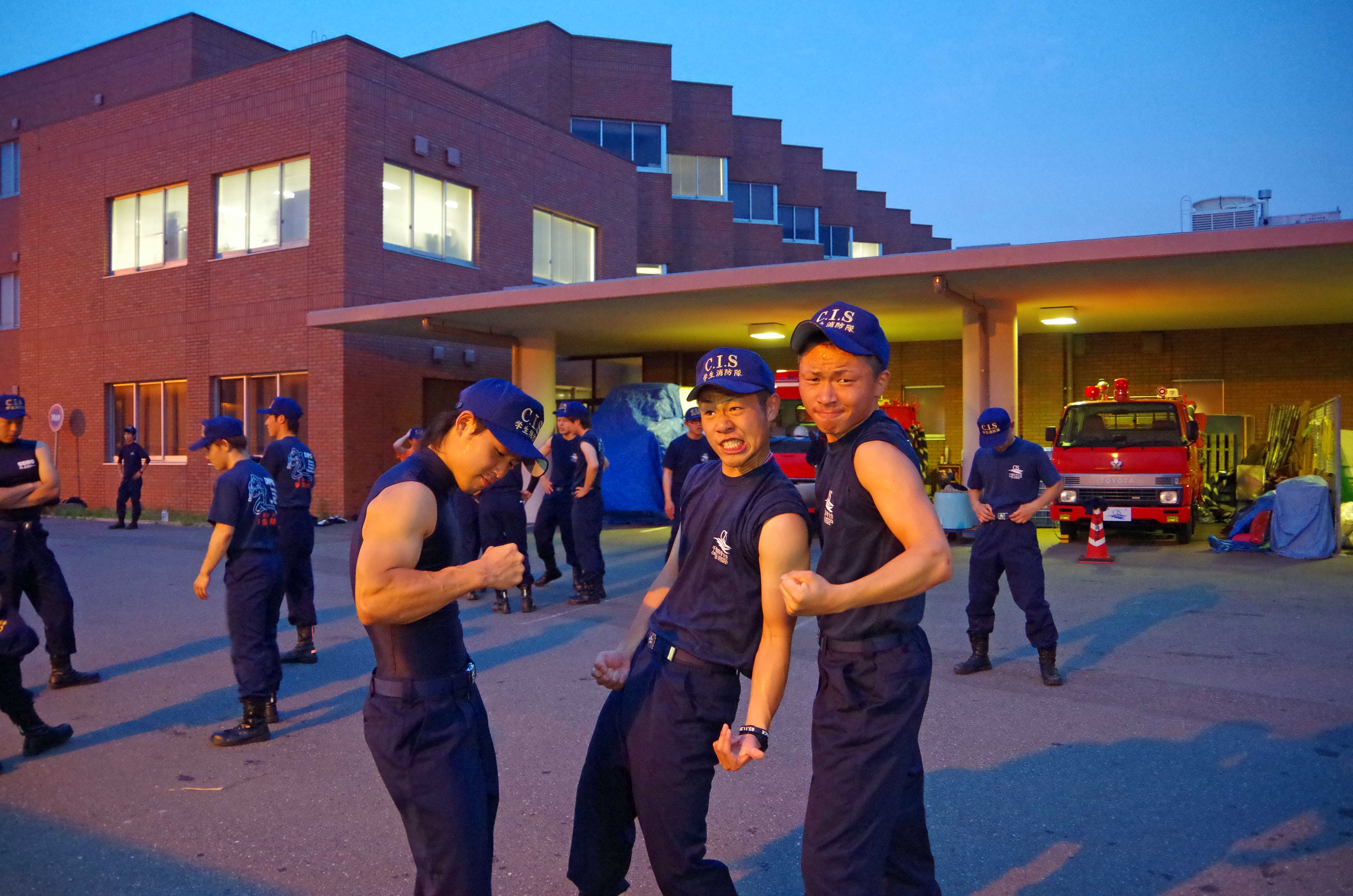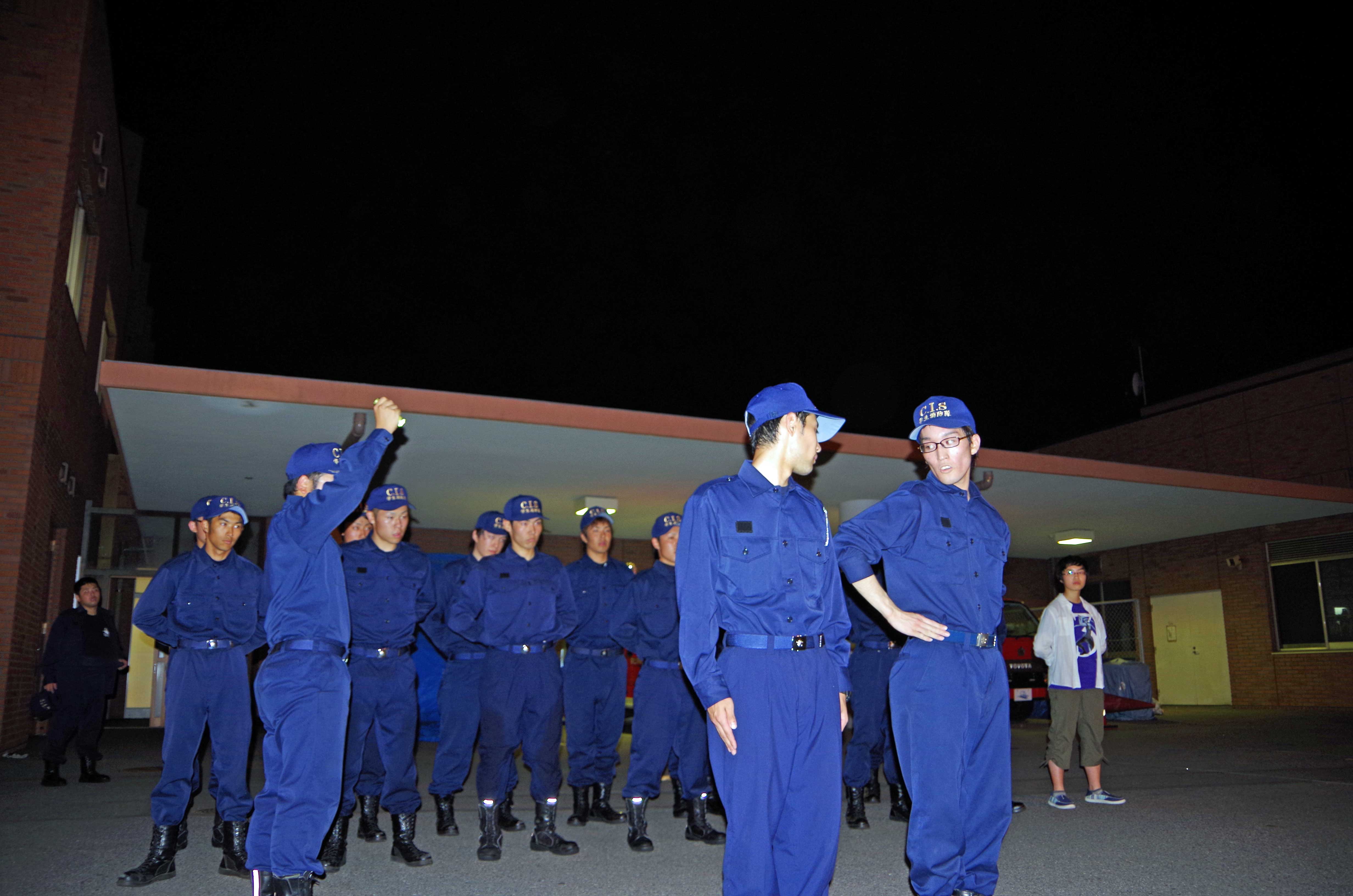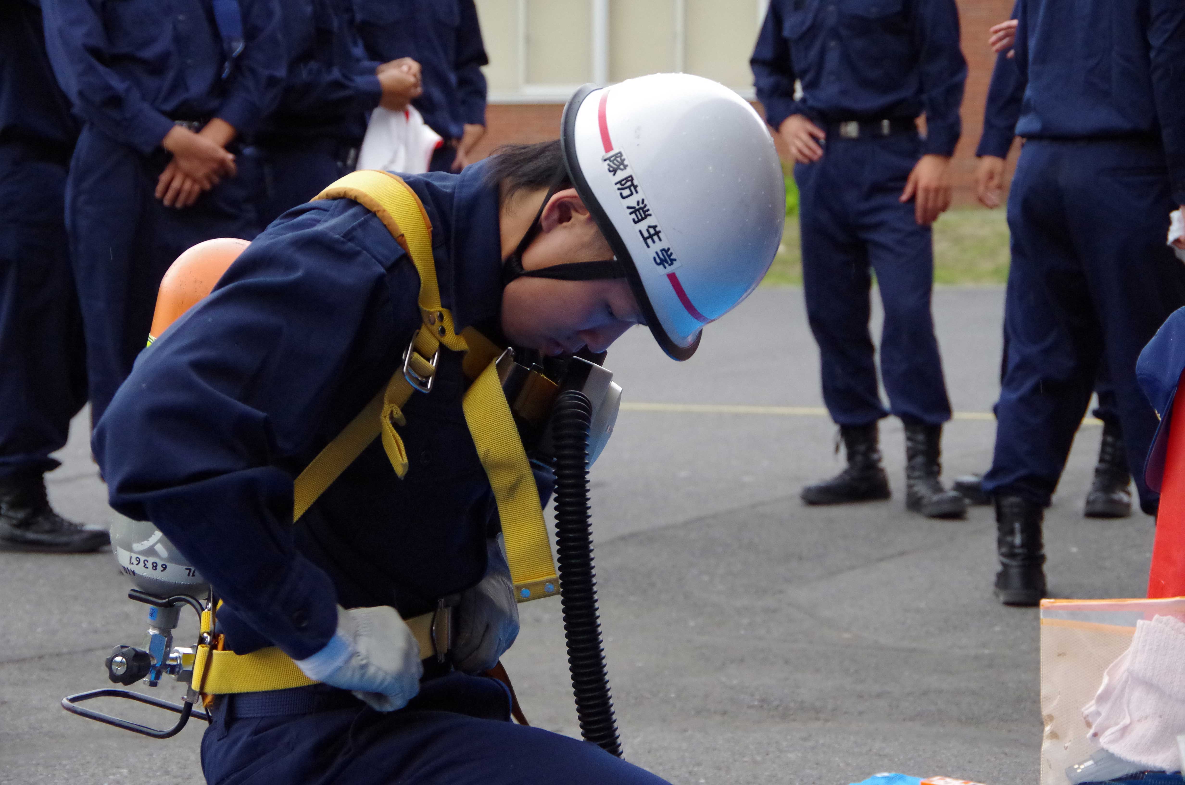 昨日はオープンキャンパスでの模擬訓練と警備訓練を実施しました。 ↑シナリオ打ち合わせ オープンキャンパスでは常備消防隊と救助隊、学生消防隊に分かれ各々のパートごとに訓練を行いました。 ↑ホース収集訓練 ↑呼吸器の装着訓練 新入隊員は初の訓練内容に興奮を隠しきれてない様子でした。(笑) また、酸素ボンベを背負ったときの表情はとてもいい顔していました。 その後、20日の浅間神社祭りに向け警備訓練を行いました。 初の警備活動を行う上で、必要な知識を実践形式で訓練をしました。 ↑警備訓練の活動状況 慣れない警備方法に困惑している隊員もいましたが、副隊長の指導力が高いおかげか真剣に取り組み、納得できるよう質問をし身につけられるよう努力していました。 入隊してから約3か月経つ新入隊員は、返事をしっかりするようになり、メリハリを徐々につけ、規律も覚え始めもうすぐでスタートラインに立てそうな気がしてきました。 成長し続ける彼らを温かく見守ってください。 ~オフショット~ 昨日の訓練では久しぶりに先輩方がいらっしゃり、戯れました。(笑) ↑下剋上なうww なぜか先輩がいると不意に甘えてしまう3年生の姿がそこにありました。