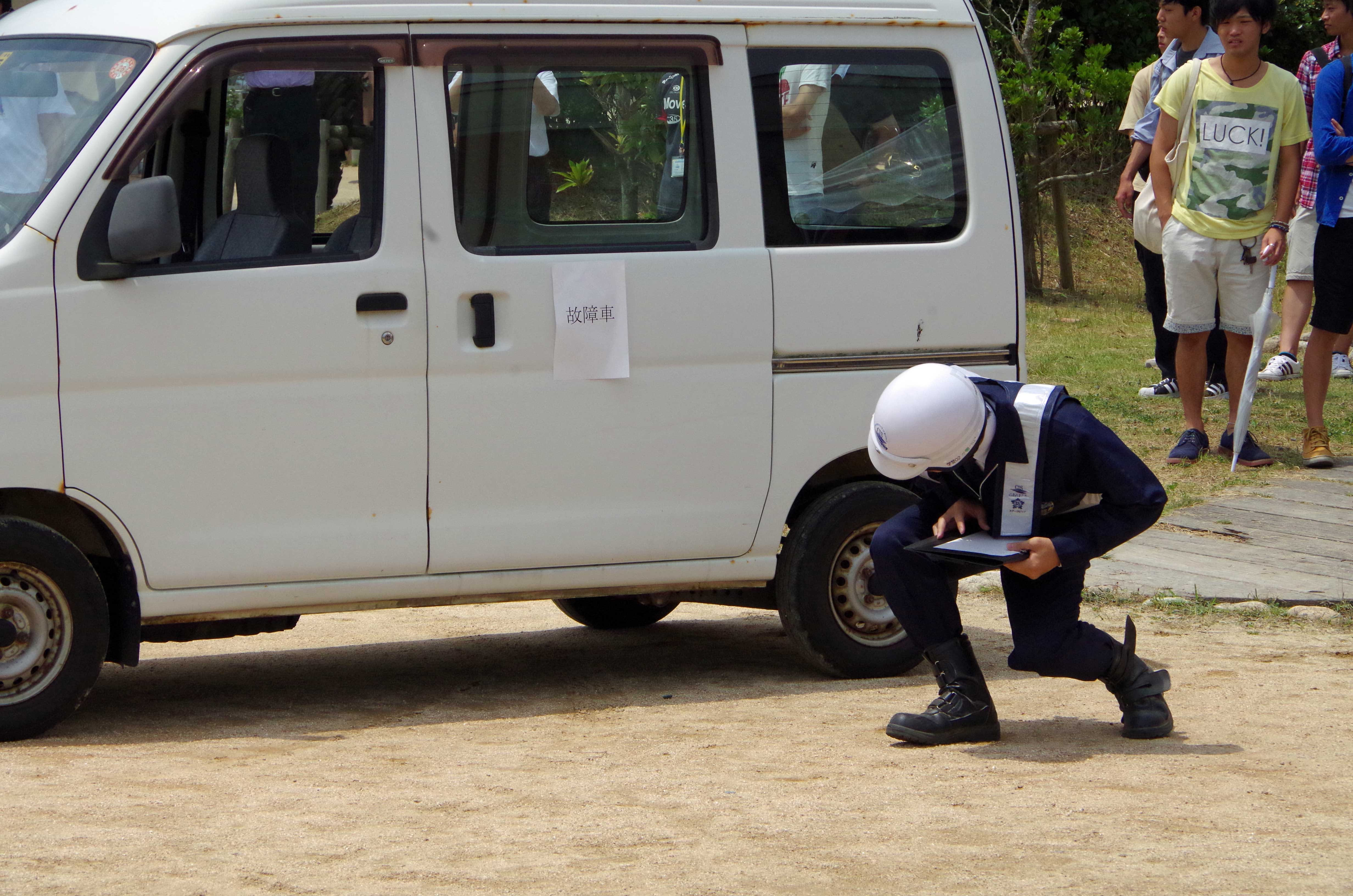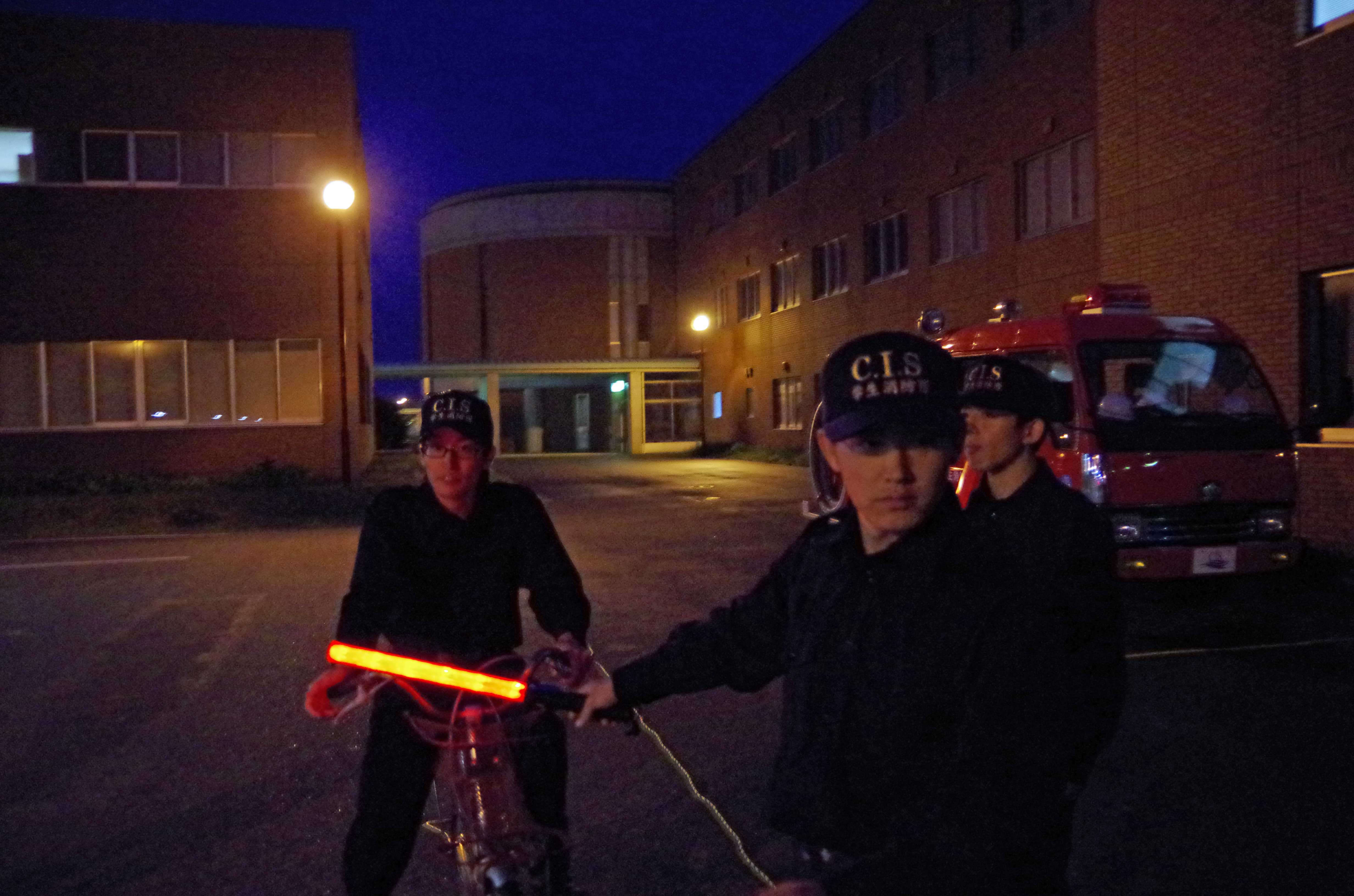 7月20日に我々、学生消防隊は浅間神社の警備を行ってきました。 気温は22度くらいで快晴、風もありコンディションはとても良い日でした! 警備日和でしたね!(笑) ↑浅間神社 今回は、学生警察支援サークルスターラビッツ(以下SRと称する)と合同で警備活動を行いました! 総勢約40名弱も集まり、警備はうまくいきそうだと不思議と思わせてくれました。 ↑SRと警備活動前の整列状況 さて、学生消防隊は各場所で交通誘導を行い歩行者保護に努めました。 2,3年生は慣れた手つきで車両や歩行者をさばいていきますが、新入隊員は動きが小さく、緊張していた様子でした。 ↑車両と歩行者の誘導状況 そんな姿も午前中までで午後からは慣れはじめ、前より数段よくなっていった様に感じとれました。 また、ただ警備をするだけでなく、実際の警備員さんから警備についてアドバイスをいただきとても良い経験をすることができました。 ↑警備員さんの指導状況 さらに、道に困っていたおばあさんにお声掛けし、ご案内いたしました。おばあさんからは「ありがとう、すごく助かったわ」と激励のお言葉を頂戴したそうです。 以前に警備訓練したことが功を奏したようにも感じ、訓練成果が出てうれしく思いました。 ↑道案内状況 しかし、夕方ごろから人材が足りなくなり、カツカツの状態でのシフト調整がつづきました。大変でした。。涙 そんな中、来て下さったのが4年生の先輩方だったのです! 先輩方はわかっていたかのように登場し、警備配置についてくださりとても助かりました。 ↑夜の警備活動 おかげで厳しい状態から脱することができた我々でしたが、反省点が多く見つかり今後の警備活動に活かしクオリティをあげていくよう努めます。 それと警備後の撤収作業では全員が疲れ切った表情をしていましたが、ある隊員からは 「警備活動できてよかったです!またやりたいです!」 と言う隊員もおり、やりがいを感じてくれたことにとてもうれしく感じました。 最後に、警備活動にご協力してくださった一般市民の皆様をはじめ、浅間神社スタッフの方々や監督、先輩方に御礼申し上げます。 まだまだ至らない点もあるかと存じますが、これからも精一杯取り組んで参りますのでご声援のほど、よろしくお願いいたします。 ~オフショット~ 1、お昼にとった写真。普段真面目なS隊員ですが、祭りのせいか開放的になってしまったみたいです。。(笑) ↑視力検査、、、? 2、みればわかるこの真剣さ。学生消防隊という名を背負う者として責務ある表情をしています。I隊員の成長に期待大です。 ↑本気と書いてガチと読む。